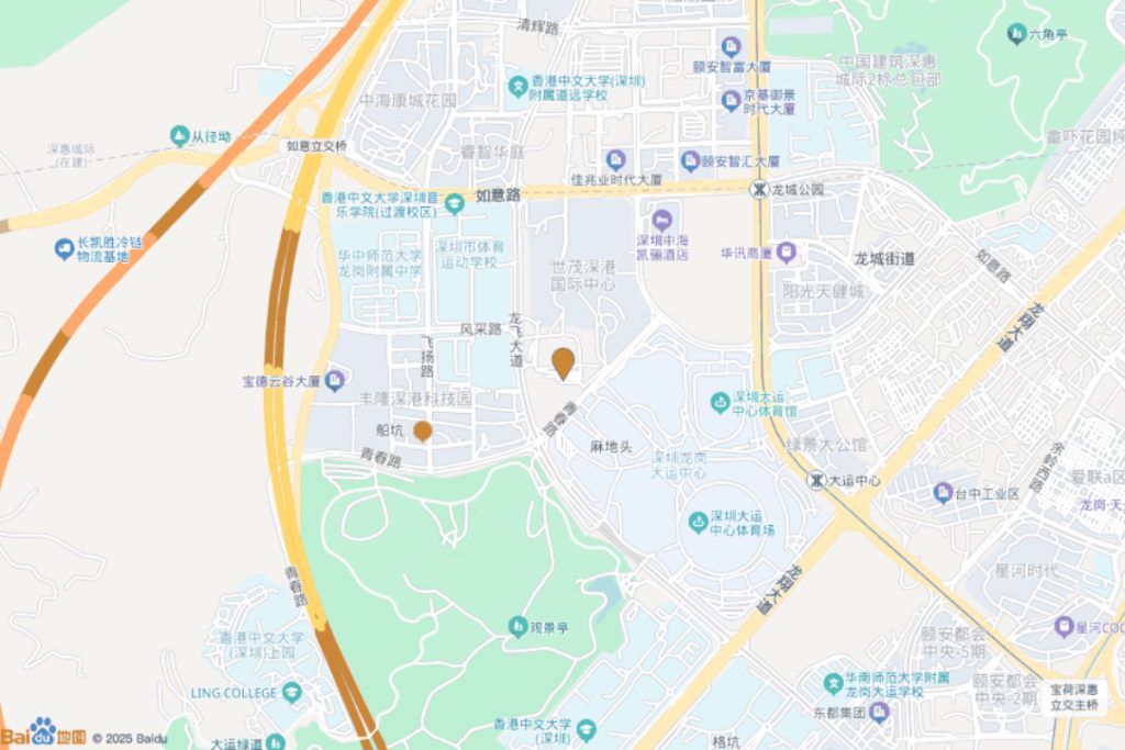 深圳龙岗区大运黄阁坑社区龙飞大道与青春路交汇处